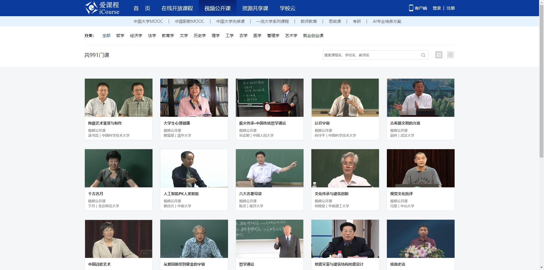 - 提供中国大学视频公开课、资源共享课和MOOC课程